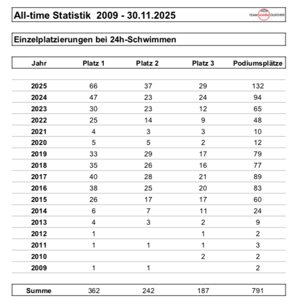 26. Oktober 2025 4 Teamsiege an einem Wochenende. Mit 95 Schwimmern zu 1.474 km in Mühlhausen, Haar, Nürnberg, Kronach, Regensburg und Gerbrunn.