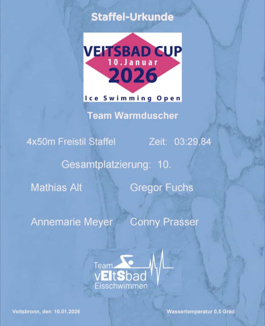 Platz 10 beim Eisschwimmen